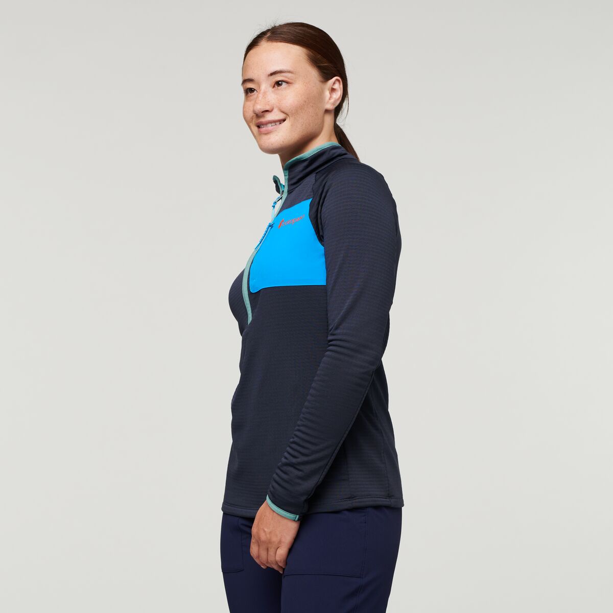 A fleece fit for movement. the Otero Half-Zip Pullover features a fitted silhouette. a recycled polyester blend. a raised grid back for more warmth and breathability. and concealed zippers. This technical fleece is great for cool weather hikes or other adventures.